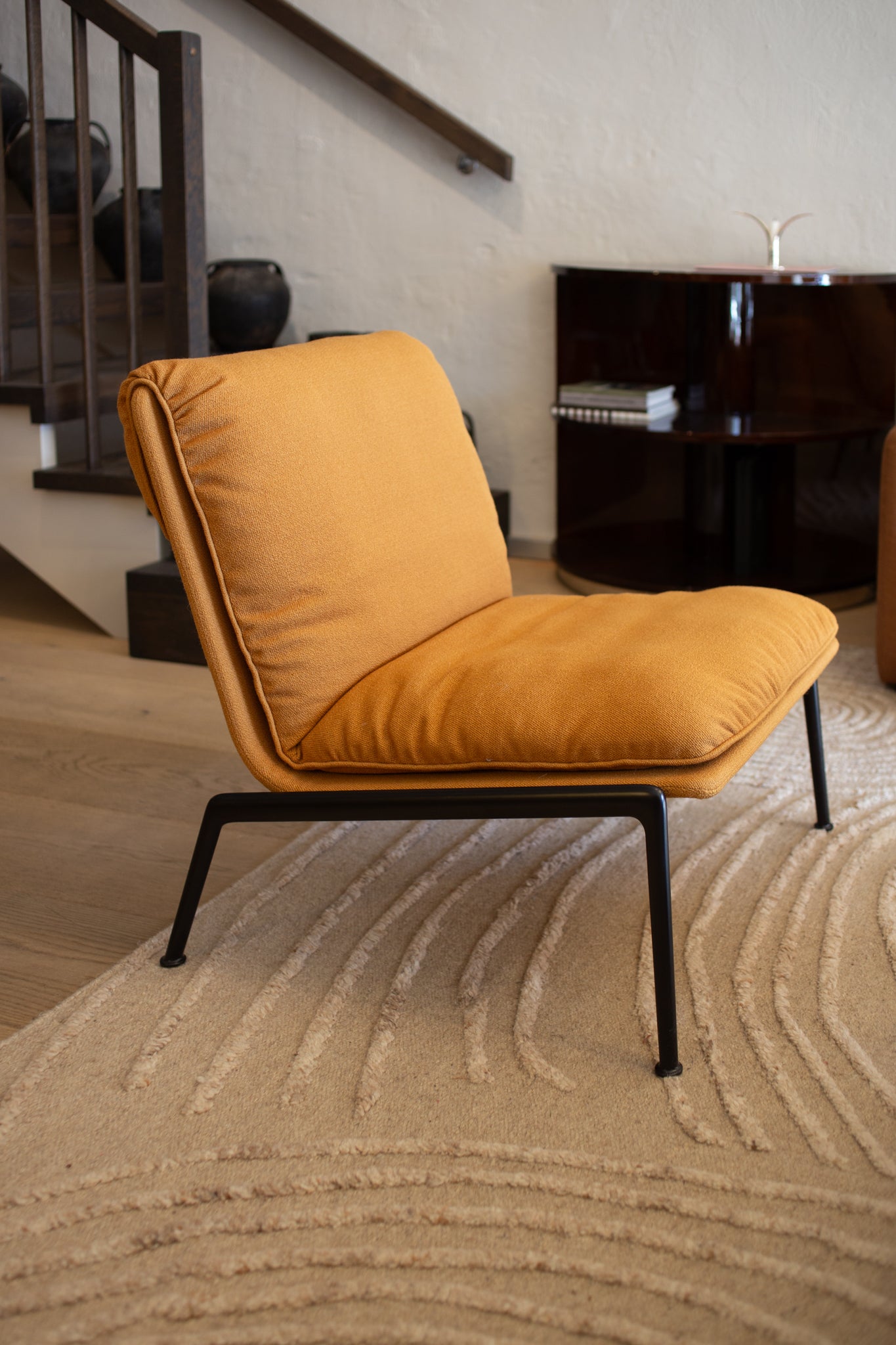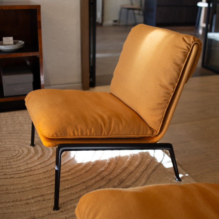 Vi har nå to stykk av denne fine lenestolen stående i showrom, til en god pris. Tekstil er det vakre ulltekstilet Vidar fra Kvadrat, i en okergul farge. Stolene må hentes i showrom!