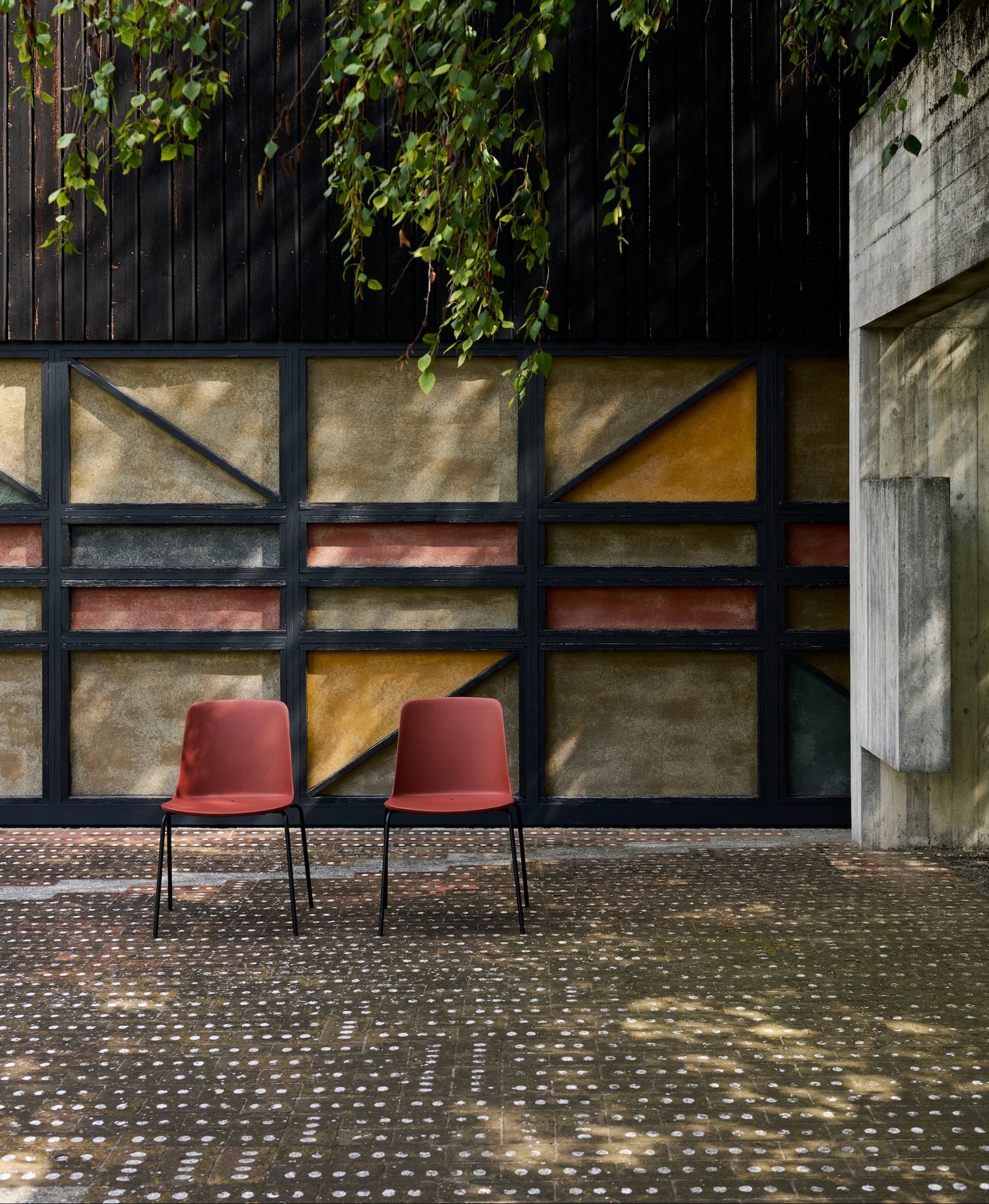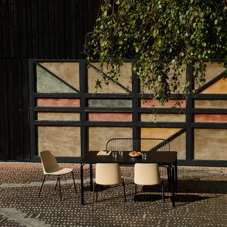 Materiale: Sete av glassfiber og resirkulert polypropylen (PP) med UV-beskyttelse. Svarte pulverlakkerte stålben for utendørsbruk.