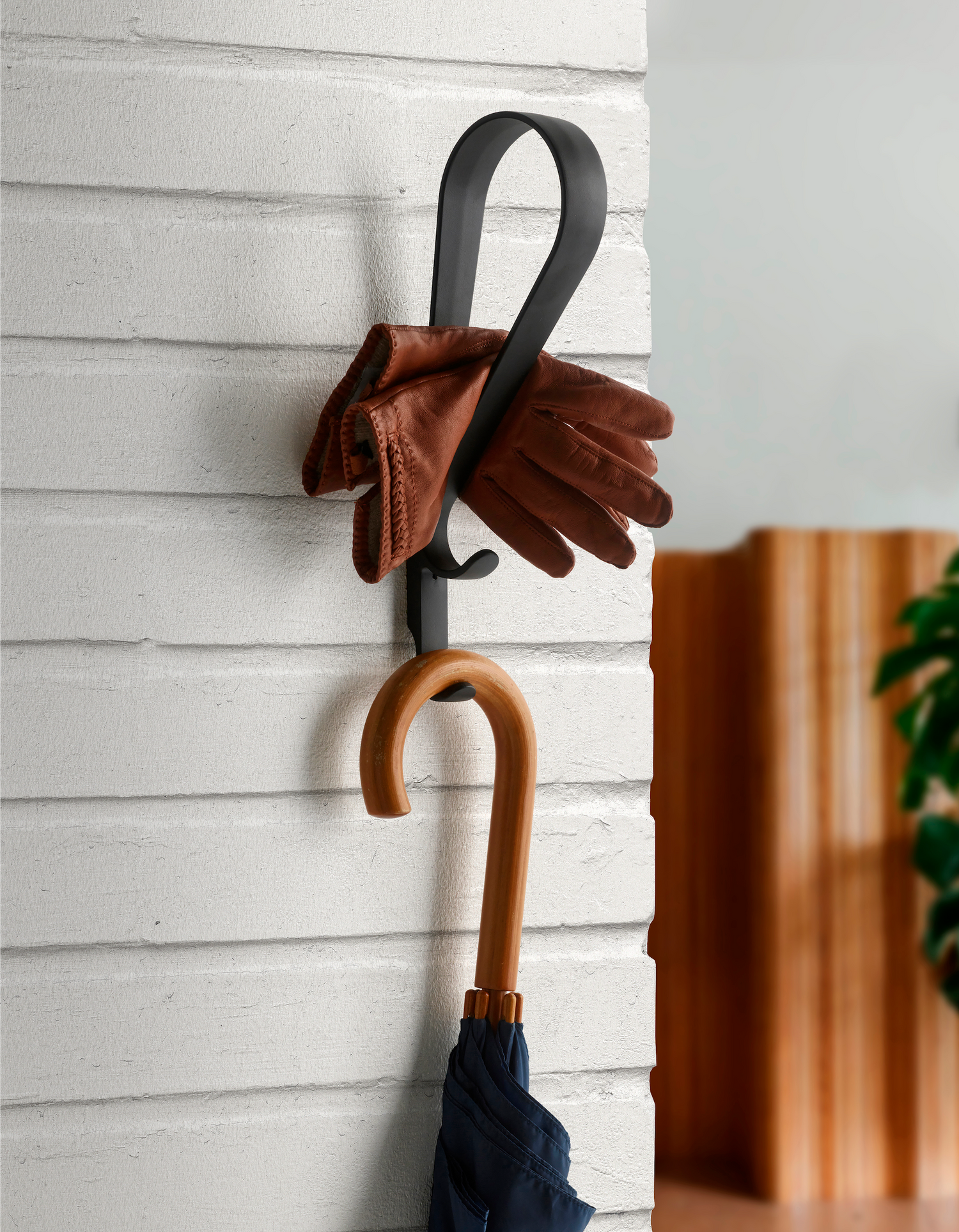 Knaggen Tupla Wall Hook fra Artek gir deg et elegant og dekorativt sted å henge fra deg jakker og vesker inne – og redskaper ute. Den svarte mattlakkerte knaggen Tupla Wall Hook er støpt i solid sink og formet i en vakker buet linje som gir deg to praktiske kroker å henge fra deg på. Og denne er like fin alene som flere sammen! Tupla er designet av brødrene Ronan & Erwan Bouroullec for Artek.