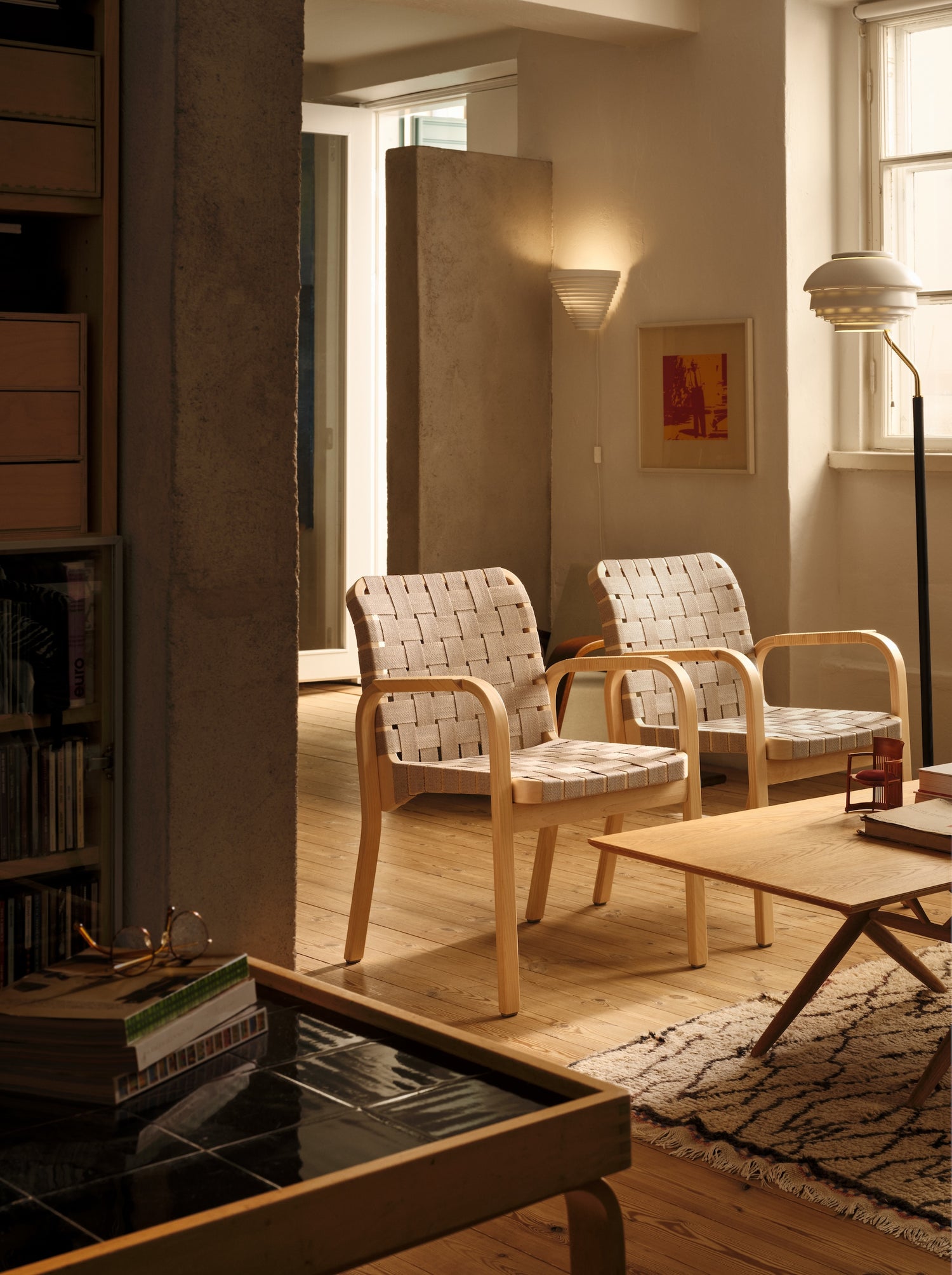 Den karakterfulle spisestolen Armchair 45, designet av den ikoniske finske designeren og arkitekten Alvar Aalto i 1947 har nå blitt relansert hos Artek – og det er vi veldig glade for! Dette er nemlig en sann skatt fra Arteks arkiver og Mid Century Modern-epoken. Den er akkurat passe typete og ‘lett’ i uttrykket, veldig god å sitte i og kommer i mange ulike utførelser, deriblant med sete i flettet lin, sete i skinn samt armlener utsmykket med detaljer i rotting eller skinn. I tillegg til å være en nydelig spisestol du kan sitte lenge i, egner også Armchair 45 seg like godt alene ved et vakkert skrivebord eller satt sammen i par ovenfor en sofagruppe. Vi er spesielt begeistret for de quiltede variantene i skinn – for bare tenk deg den vakre patinaen de vil få med tiden!