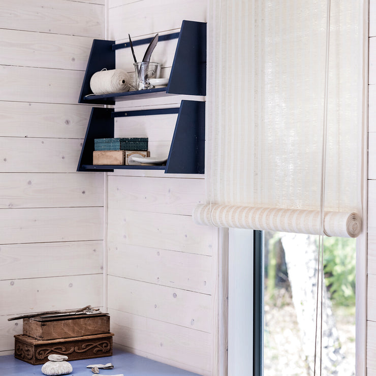 Jute er et naturmateriale med en nydelig tekstur. Denne rullegardinen fra Color&Co er finvevd i lys jute med hvite striper som er ca 1 cm brede. Rullegardinen vil få en mer naturlig brun tone over tid.