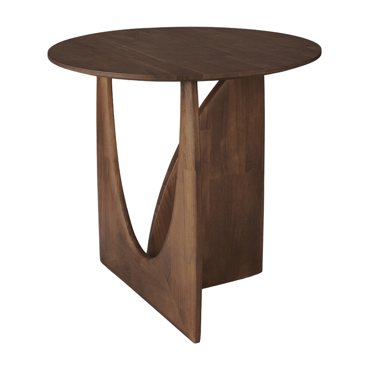 Sidebordet Geometric Side Table fra Ethnicraft er et vakkert og skulpturelt sidebord i heltre med mykt avrundede kanter og et formmessig spennende understell. Buede former og rette vinkler skaper lekne kontraster med lys og skygge og gjør sidebordet til et blikkfang fra alle vinkler. Sidebordet er nydelig utført i heltre, der du kan velge mellom oljet naturfarget eik, svartlakkert eik og brunlakkert teak.