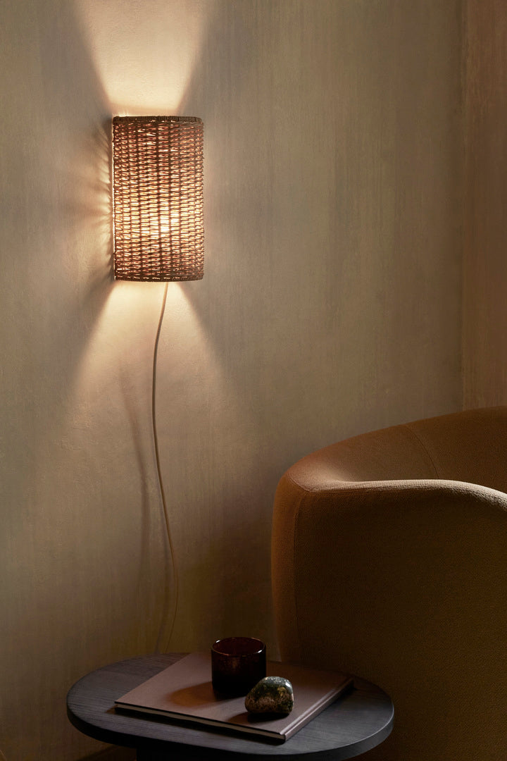 Dou vegglampe i flettet rotting fra Ferm Living. En stemningsfull lampe som både lyser og pynter opp på veggen. Lampen er håndflettet i naturlig rotting og har et kontastfullt design, hvor geometri møter organisk materiale og struktur. Den er fin å henge ved sengen, i en gang eller på en ledig vegg i sta som lysende dekor. Lampen gir et mykt, komfortabelt lys – som slippes som små lysgløtt gjennom den flettede skjermen. Dou-lampen vil tilføre tekstur, taktilitet og varm stemning til interiøret ditt!