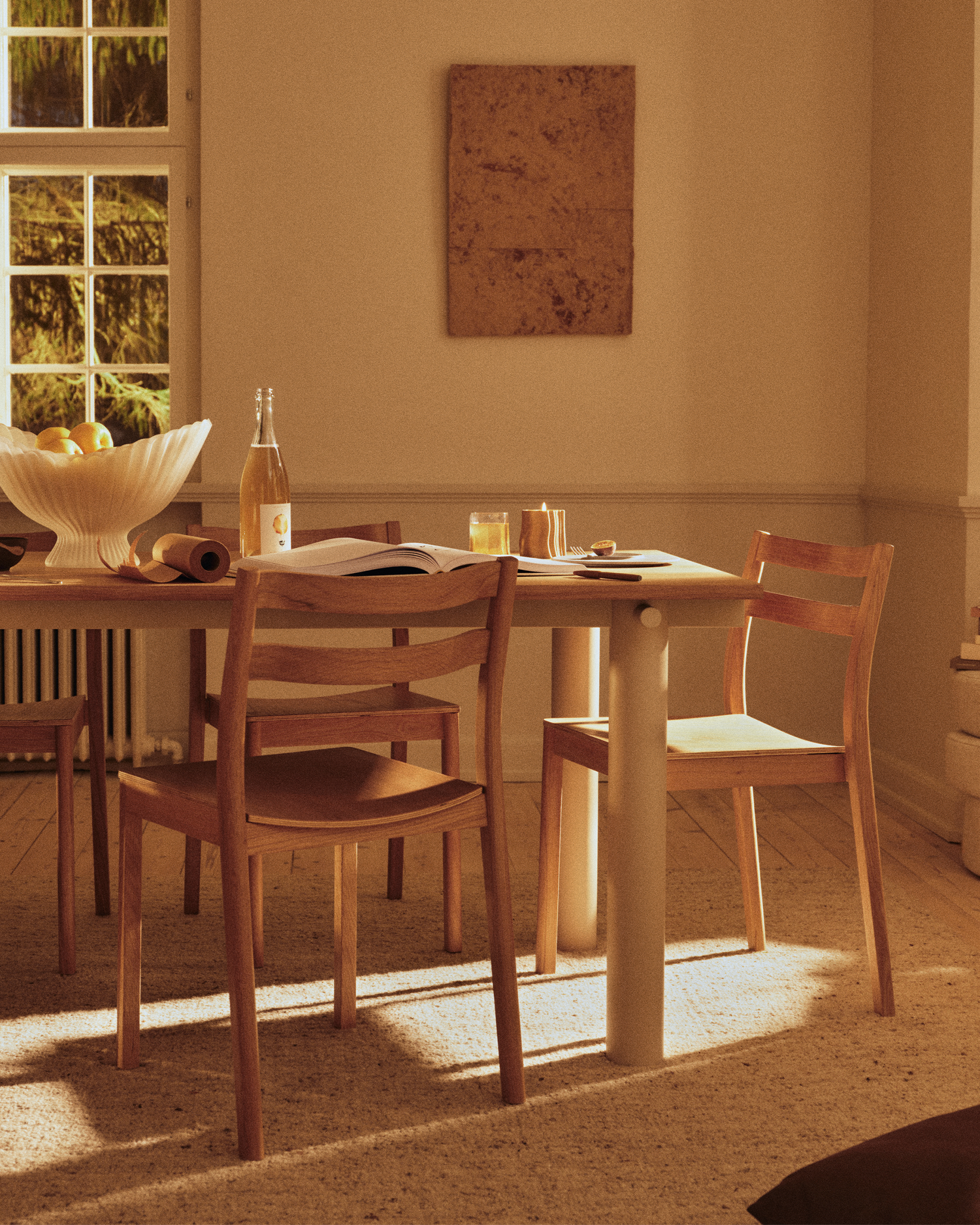 Spisebordet Atura har et rolig og nedtonet uttrykk, men er likevel fullt av karakter. Bordet kombinerer en ramme i pulverlakkert stål med en bordplate i eikefinér. Understellet består av tre geometriske profiler som krysser hverandre og skaper en stram, arkitektonisk struktur. Dette gir bordet et visuelt spennende og solid uttrykk. Rammen finnes i to størrelser og flere farger, og bordplaten kan velges i ulike materialer og overflater, slik at du kan tilpasse bordet til ditt eget hjem. Leveres flatpakket.
