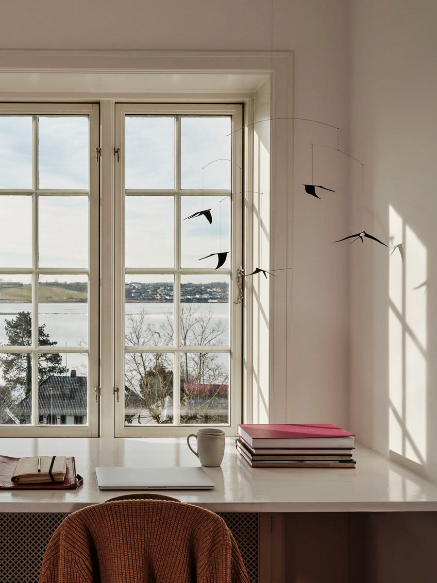 Fem svevende svaler glir over rommet. Heng uroen over dagsengen, på hjemmekontoret eller på barerommet og se svalenes elegante flukt.