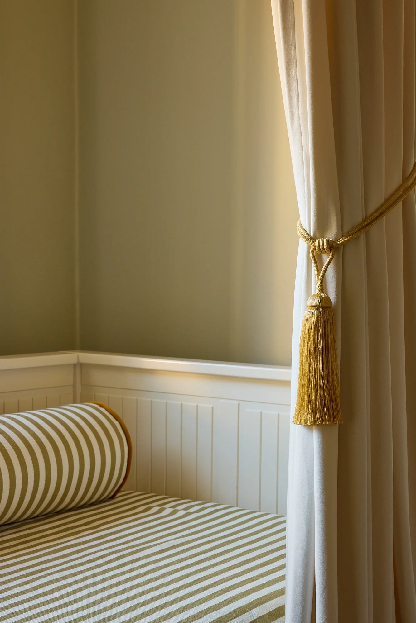 Ute etter et elegant tilskudd til soverommet? Sengeteppene i vevd lin fra Gotain skreddersys etter dine mål – og du kan velge mellom fire fine farger med klassisk stripete mønster – velg mellom rød/ Burgundy, blå/ Dove Blue, olivengul/ Olive Green og sennepsgul/ Mustard. Sengeteppene har en vakker vevd struktur og faller pent over sengen. Linstoffet er produsert i Tyrkia og blir spesialsydd i Sverige.