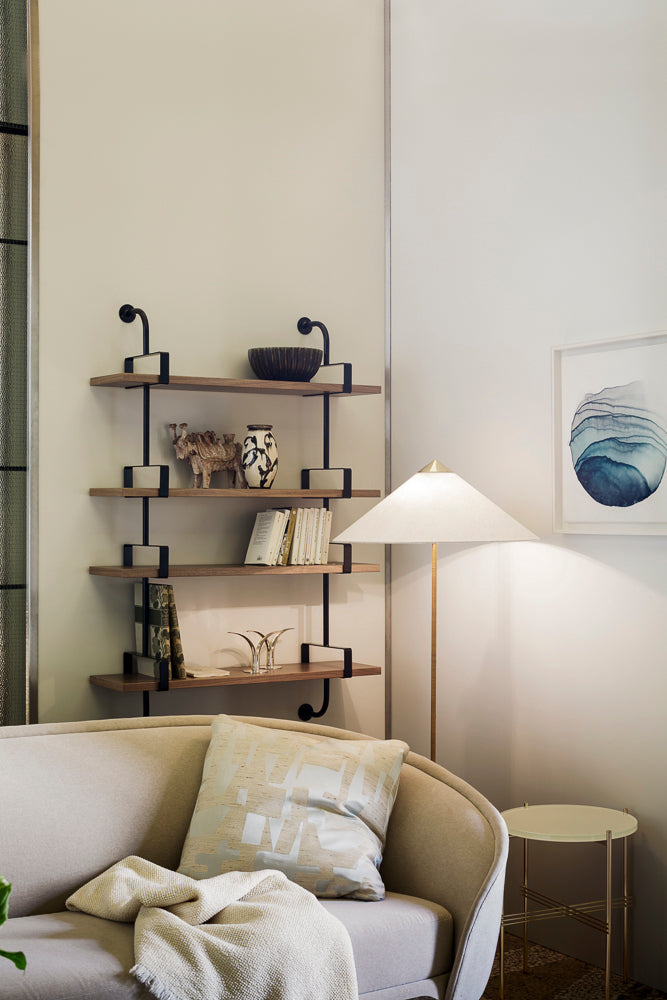Den finske designeren Paavo Tynell (1890-1973) designet gulvlamen 9602, også kjent som "Chinese Hat", i 1935 for Hotel Aulanko. Det blir sagt om Tynell at han brakte romantikk og magi inn i den ellers forenklede og rene lampedesignen som preget hans tid. Gamle eksemplarer av Tynell-lamper har vært vanskelige å få tak i, og prisene har skutt i været når de en sjelden gang er lagt ut på auksjoner. Gubi har nå relansert en serie av Tynells design i Tynell Collection, som i dag er like aktuelle som da de først ble lansert. Materialene er vi allerede glade i: messing, skinn og rotting, og formspråket er helt i tråd med en mer dekorert trend. Tynells lamper kan hjelpe deg med å hente magien, romantikken og personligheten tilbake i interiøret! 9602 Floor Lamp vil stå fint i et hjørne eller ved siden av en sofa eller lenestol og vil skape hyggelig atmosfære i hjemmet. Berik hjemmet med både god stemning og et fint stykke designhistore!