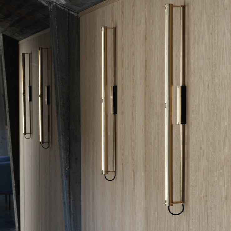 Vegglampen Bloomsbury, designet av Niclas Hoflin blir laget for hånd i Sverige, med kjærlighet og dedikert fokus på detaljer og materialer. Lampen er enkel, industriell og elegant på ramme tid, og er like mye lampe som dekorativt objekt til veggen. Lyskilden på Bloomsbury-lampen er plassert i et 80 cm langt laserskåret messingrør. Metalldelene er av massiv messing. Lampen kan også lages i svart eller bronse, ta kontakt med oss på kundeservice, så hjelper vi deg!