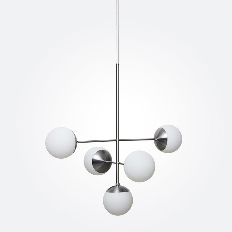 Lord Diva med fem kupler er et et fint alternativ til gamle lysekroner. Lampen passer godt boliger med klassiske detaljer, som rosett og stukkatur, og i mer moderne rom. Den minimalistiske lampen henger fra en spunnet takkopp.