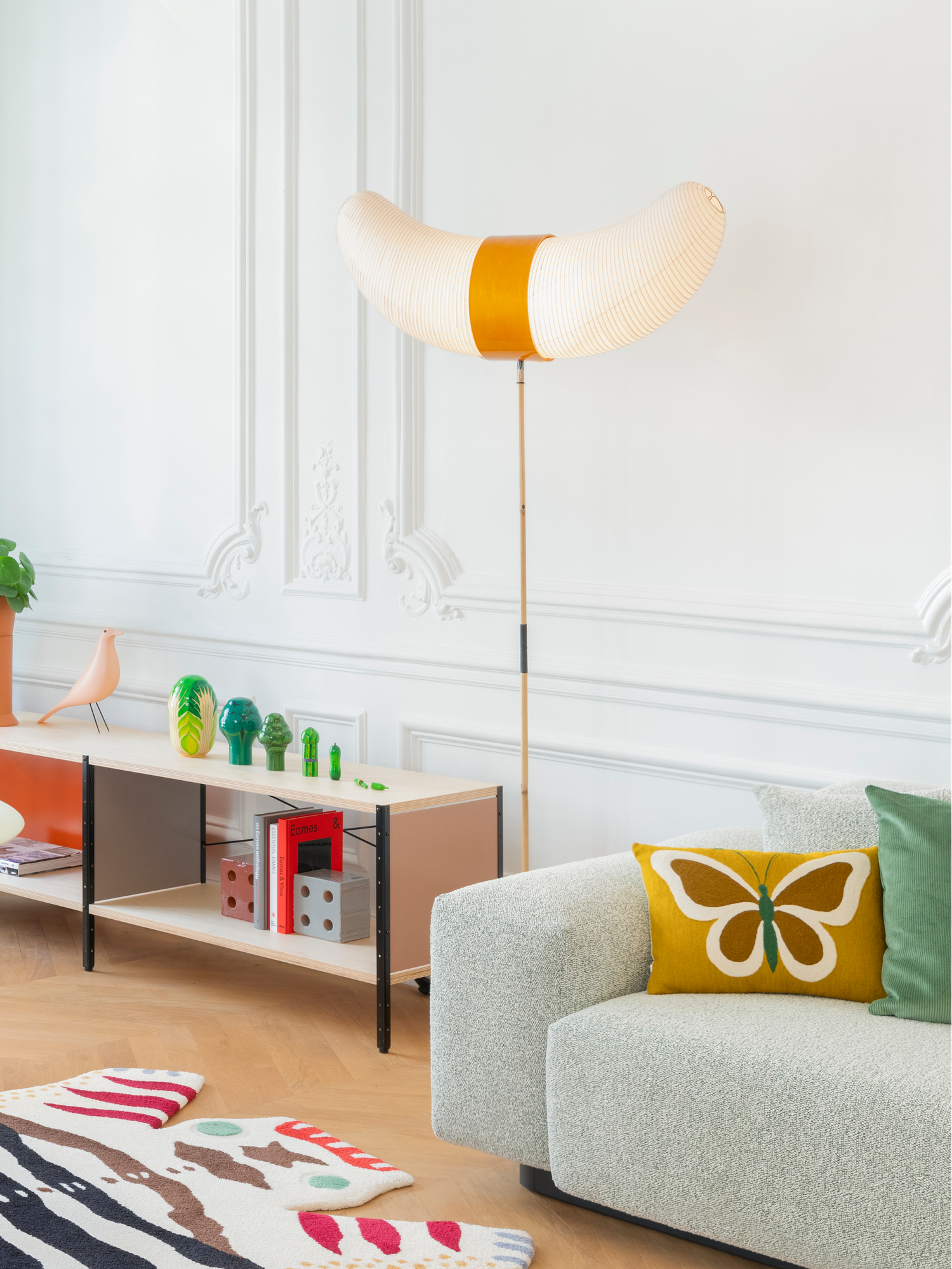 Lampen Akari Light BB3-33S fra Vitra er en del av en lampeserie som er designet av Isamu Noguchi i 1951. Lampene fra Vitra er håndlaget i shoji-papir av japanske håndverkere. Designeren ville gjenskape sollyset, ved å sende det harde elektriske lyset gjennom papirets myke magi.